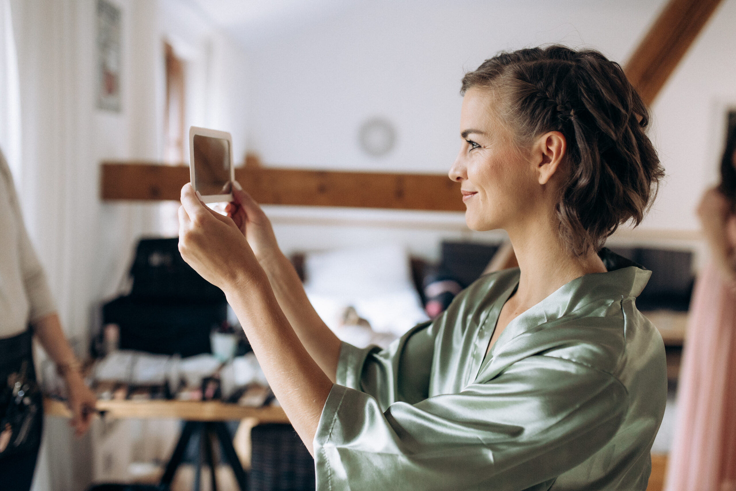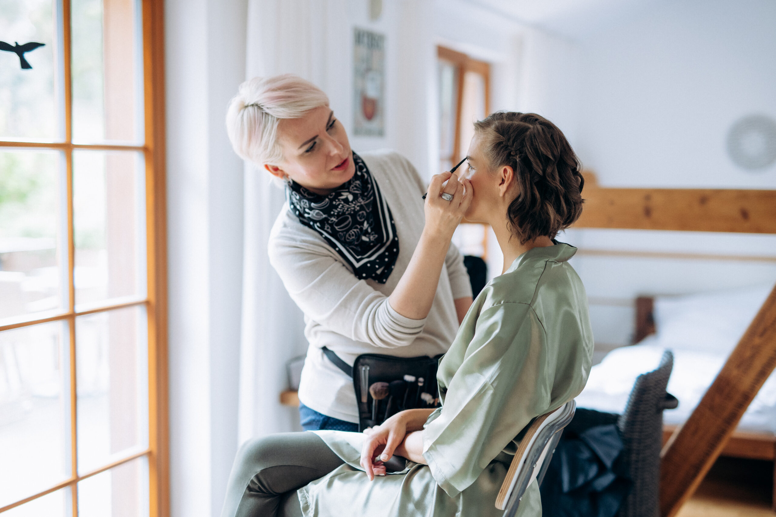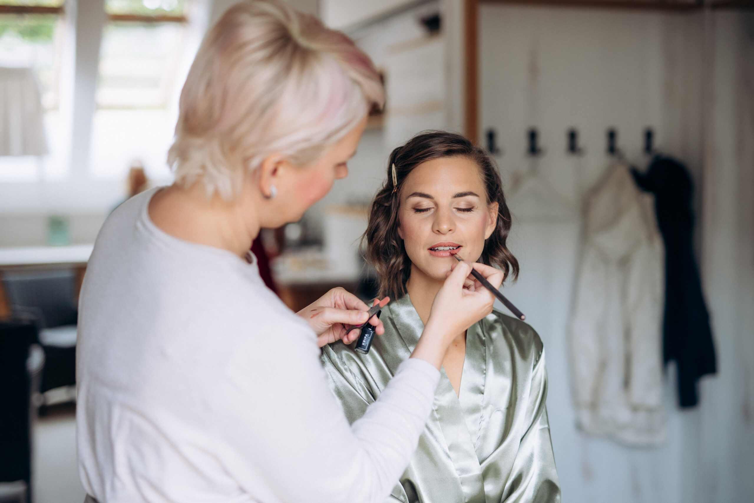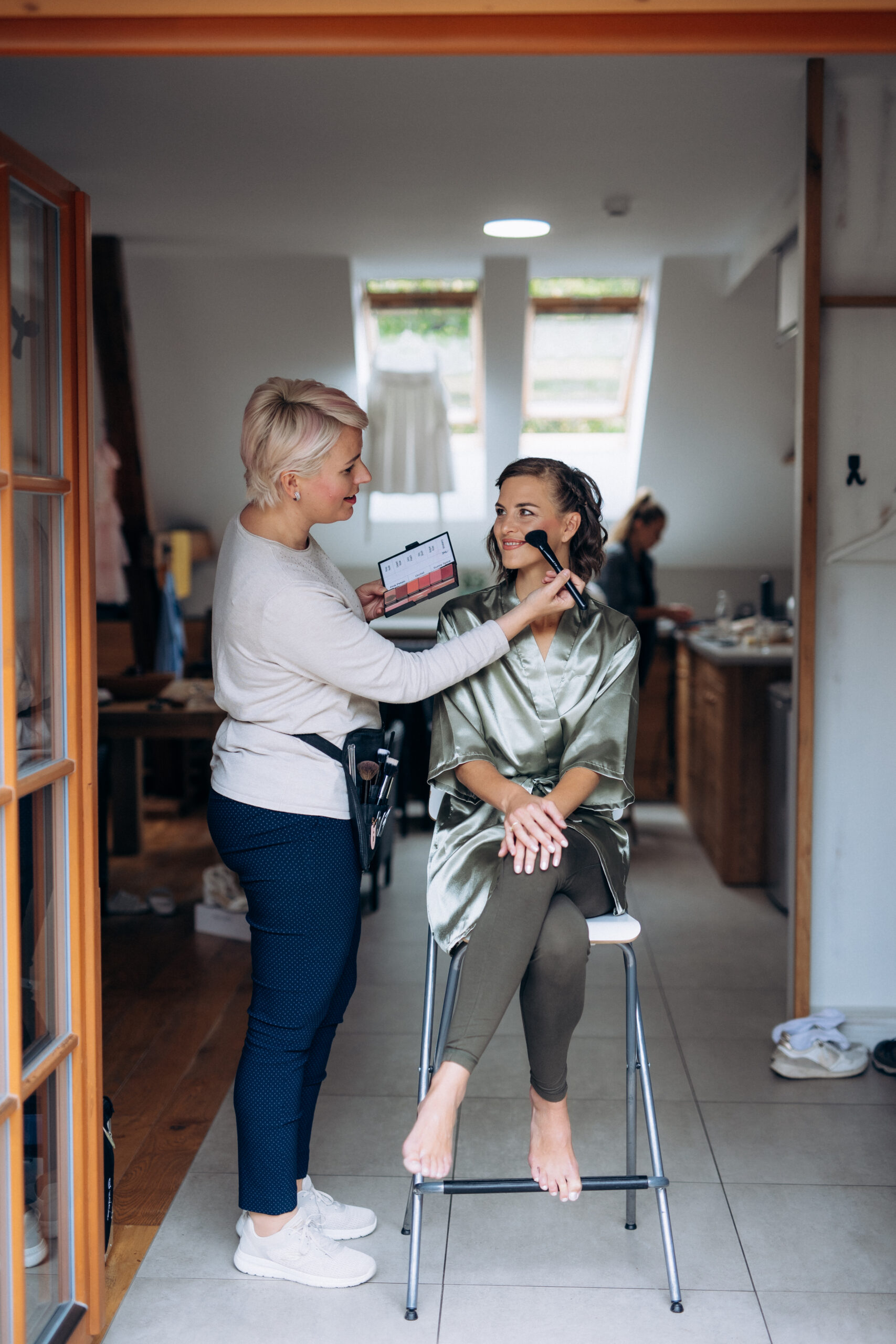 - Svatební líčení nabízím nejen u sebe ve studiu, ale po domluvě za vámi ráda přijedu domů, nebo na vámi určené místo (kadeřník, hotel, k rodičům atd.).